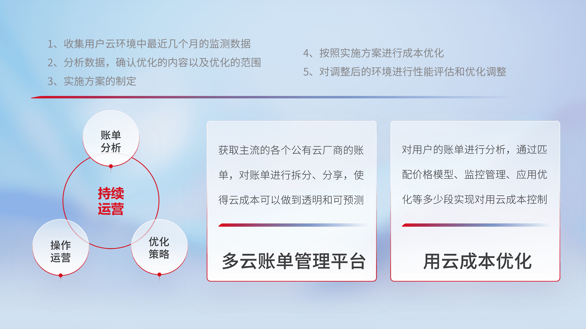 监控业务系统资源开销,,对资源的消耗精确计量,,实现费用的透明化管理,,不断提升资源使用率,,,调整资源购买方式,,降低资源费用成本,,,用云成本可预测、、用云费用可优化,,云资源配额有据可依。。